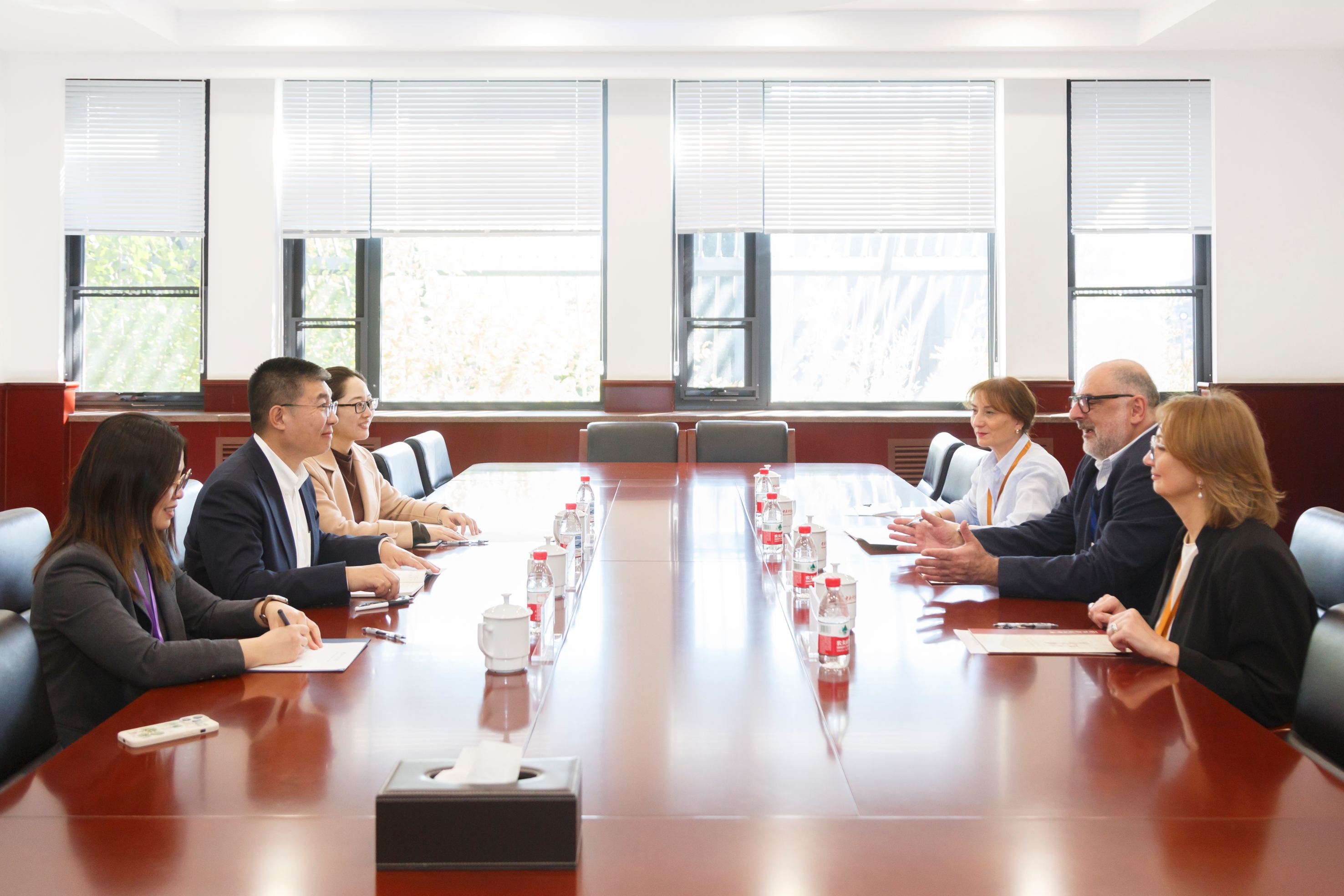 On the afternoon of October 21, President Hao Rong of the Central Academy of Drama (CAD) held talks with Rector George Shalutashvili of Shota Rustaveli Theatre and Film Georgia State University from Georgia, along with Nana Letsveridze, Head of the International Relations Office, and Meri Dadiani, Technical Director. The meeting was also attended by Ju Ping, Director of Foreign Affairs, and Xiang Yueyi from the Foreign Affairs Office.